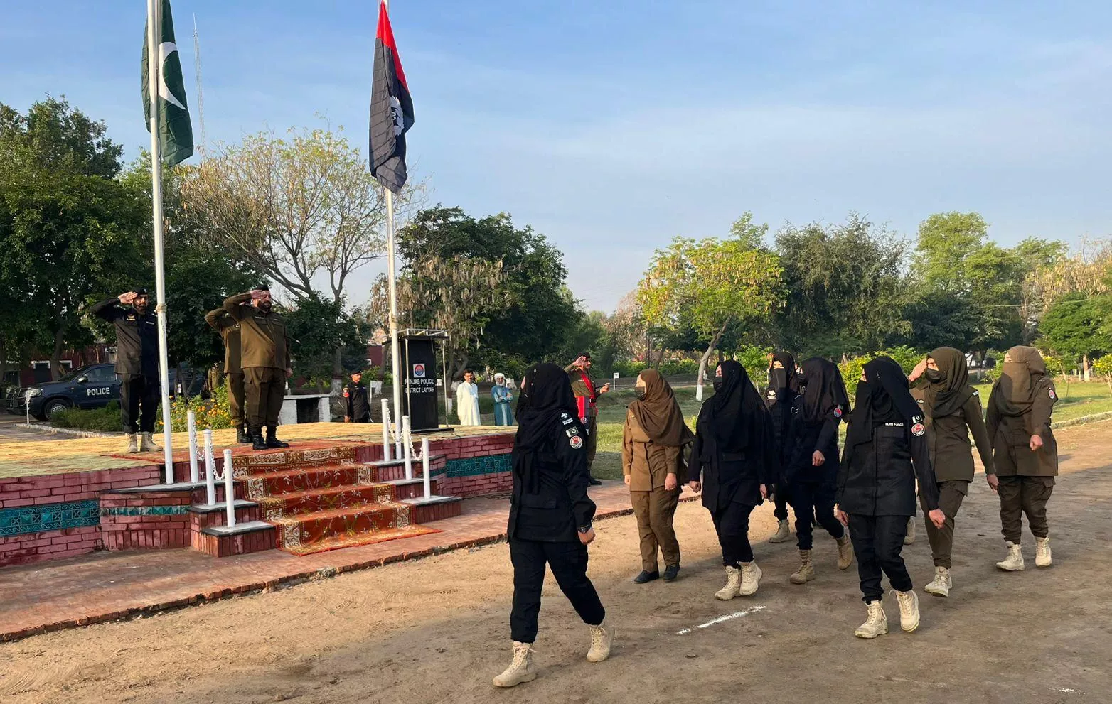 لیہ ( نمائندہ لیہ ٹی وی) انسپکٹر جنرل آف پولیس پنجاب کی ہدایت پر پولیس لائن لیہ میں علی الصبح جنرل پریڈ کا انعقاد,ڈی ایس پی انویسٹیگیشن شوکت علی نے جنرل پریڈ کا معائنہ کیا اور سلامی لی, ایلیٹ فورس ،ٹریفک پولیس، ضلعی پولیس اور لیڈیز پولیس افسران و اہلکاران نے جنرل پریڈ میں حصہ لیا،ڈی ایس پی نے جوانوں کا ٹرن آؤٹ چیک کیا اوربہترین ٹرن آؤٹ والے جوانوں کو شاباش دی ، ڈی ایس پی انویسٹیگیشن نے جوانوں سے خطاب کرتے ہوئے کہا کہ جنرل پریڈ کے انعقاد کا مقصد فورس کے ٹرن آؤٹ اور ڈسپلن کو بہتر بنانا ہے