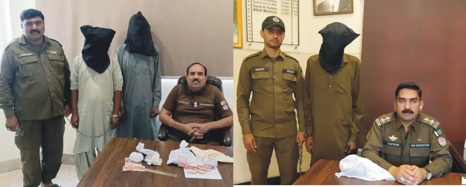 لیہ( نمائندہ لیہ ٹی وی ) تھانہ کوٹ سلطان اور تھانہ سٹی پولیس کا منشیات فروشوں کے خلاف کریک ڈائون جاری ،کامیاب کاروائیوں کے دوران تین ملزمان گرفتار ،1240 گرام آئس برآمد ،مقدمات درج ،تھانہ سٹی پولیس کے سب انسپکٹر زعفران کاظم نے پولیس ٹیم کےہمراہ کاروائی کرتے ہوئے بد نا م زمانہ منشیات فروش اللہ ڈتہ کو گرفتار کرکے 520 گرام آئس برآمد کر لی جبکہ تھانہ کوٹ سلطان پولیس کے سب انسپکٹر نصر اللہ اور اے ایس آئی غلام سعید نے پولیس ٹیم کےہمراہ الگ الگ کاروائی کرتے ہوئے منشیا ت فروش ملزمان نصیر احمد اور مشتاق احمد کو گرفتار رکرکے ان کے قبضہ سے 720 گرام آئس برآمد کر لی ،ملزمان کے خلاف الگ الگ مقدمات کا اندراج کر لیا گیا ۔