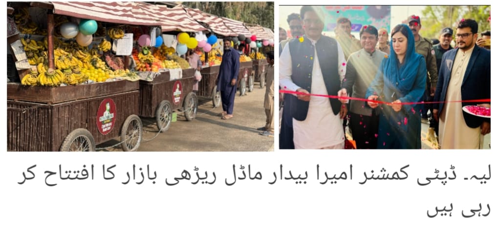 لیہ (نمائندہ لیہ ٹی وی) وزیر اعلیٰ پنجاب مریم نواز شریف کے وژن ’’ستھرا اور خوبصورت پنجاب‘‘ کے تحت ضلعی انتظامیہ لیہ نے عوامی سہولت کے ایک اور اہم منصوبے کو عملی شکل دے دی۔ ڈپٹی کمشنر امیرا بیدار نے مائنر پل کے اطراف 50 جدید اور یکساں ڈیزائن شدہ ریڑھیوں پر مشتمل *ماڈل ریڑھی بازار* کا افتتاح کیا۔افتتاحی تقریب میں ایڈیشنل ڈپٹی کمشنرز محمد شاہد ملک، شبیر احمد ڈوگر، اسسٹنٹ کمشنر حارث حمید خان، ایس ڈی ای او امِ حبیبہ قریشی، چیف آفیسر ضلع کونسل محمد فیصل، میونسپل آفیسر ایم اینڈ آر شبانہ رشید اور دیگر افسران بھی موجود تھے۔ڈپٹی کمشنر امیرا بیدار نے اس موقع پر گفتگو کرتے ہوئے کہا کہ ماڈل ریڑھی بازار شہر کی خوبصورتی میں بہترین اضافہ ہے۔ یکساں ڈیزائن، منظم ترتیب اور صاف ستھرا ماحول شہریوں کو پر سکون خریداری کی سہولت فراہم کرے گا۔ انہوں نے کہا کہ وزیر اعلیٰ پنجاب مریم نواز شریف کا وژن عوامی سہولت اور باعزت روزگار کی فراہمی پر مبنی ہے، اور ریڑھی مالکان کو بہتر جگہ اور سہولیات دینا انتظامیہ کی ذمہ داری ہے۔ڈپٹی کمشنر نے مزید اعلان کیا کہ جلد ہی **کوٹ سلطان اور چوک اعظم** میں بھی اسی طرز کے ماڈل ریڑھی بازار قائم کیے جائیں گے تاکہ ضلع بھر میں یکساں معیار کی سہولیات فراہم کی جا سکیں۔افتتاح کے موقع پر ڈی سی لیہ نے بازار کا تفصیلی معائنہ کیا، ریڑھی مالکان سے گفتگو کی اور ان کے مسائل سے آگاہی حاصل کی۔ ریڑھی مالکان نے خوبصورت اور معیاری بازار کی فراہمی پر وزیر اعلیٰ پنجاب اور ضلعی انتظامیہ کا شکریہ ادا کیا۔ڈپٹی کمشنر امیرا بیدار نے خریداروں سے بھی بات چیت کی۔ خریداروں نے بازار کے ماحول، صفائی اور منظم ترتیب کو سراہتے ہوئے اسے قابلِ تحسین اقدام قرار دیا۔ ڈی سی لیہ نے موقع پر ہدایت کی کہ ریڑھی بازار میں **مزید اسٹریٹ لائٹس اور خریداروں کے بیٹھنے کے مقامات** کا انتظام بھی فوری طور پر یقینی بنایا جائے۔