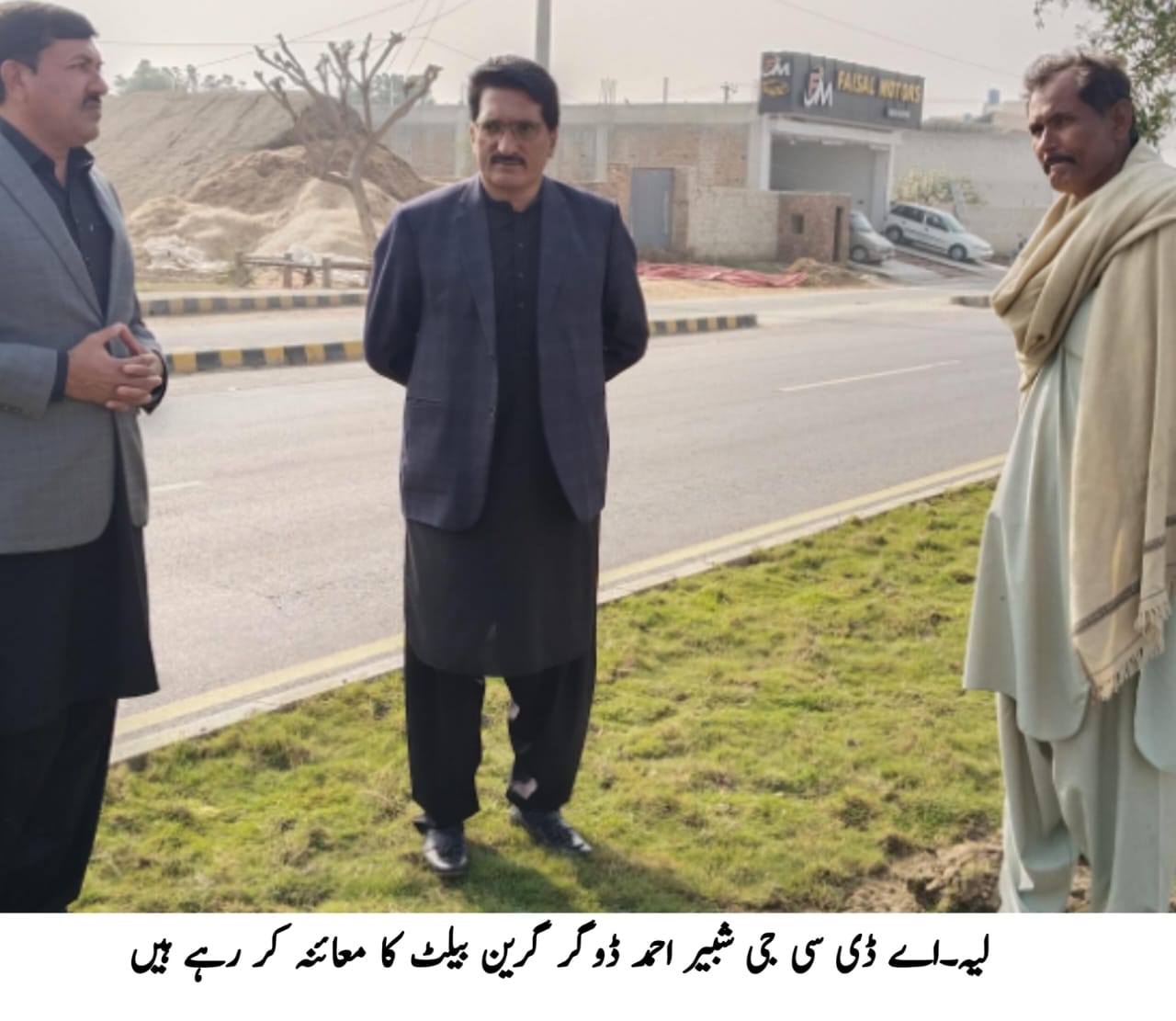 لیہ(نمائندہ لیہ ٹی وی)ڈپٹی کمشنر امیر ابیدار کی ہدایات پر ایڈیشنل ڈپٹی کمشنر جنرل شبیراحمد ڈوگر نے لیہ چوک اعظم روڈ گرین بیلٹ کا معائنہ کیا ۔ انہوں نے ترقیاتی و بحالی کے جاری کام کا تفصیلی جائزہ لیتے ہوئے کورین کارپٹ گراس کی تنصیب کا معائنہ کیا۔ اس موقع پر انہوں نے متعلقہ عملے کو ہدایت کی کہ کام کو معیار کے مطابق اور جلد از جلد مکمل کیا جائےگرین بیلٹ پر موجود پودوں اور گراس کی دیکھ بھال اور بہتری کے تمام اقدامات مستقل بنیادوں پر جاری رکھے جائیں تاکہ شہریوں کو صاف، محفوظ اور خوشگوار ماحول فراہم کیا جا سکے۔