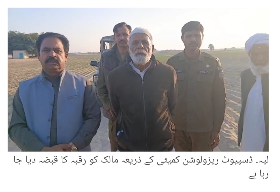 لیہ(نمائندہ لیہ ٹی وی) وزیر اعلیٰ پنجاب مریم نواز شریف کے احکامات پر ضلع لیہ کے ایک اور بے بس شہری کو جائیداد کا قبضہ مل گیا۔ شہری ملکیتی رقبہ 330 کنال کا قبضہ ملنے پر خوشی سے سرشار۔ درخواست گزار زہرہ بی بی کے شوہر منظور حسین نے وزیر اعلیٰ پنجاب مریم نواز شریف اور ڈپٹی کمشنر امیرا بیدار کا شکریہ ادا کیا۔ تفصیل کے مطابق موضع پتی سمی تحصیل چوبارہ کی رہائشی خاتون زہرہ بی بی نے ڈسپیوٹ ریزولوشن کمیٹی میں درخواست گزاری جس میں اس کی ملکیتی رقبہ پر ناجائز قابضین قابض تھے۔ ڈپٹی کمشنر امیرا بیدار نے اے سی چوبارہ ندیم ارشد کو مذکورہ شہری کا رقبہ فورآ واگزار کروانے کی ہدایت کی۔ اسسٹنٹ کمشنر نے ریونیو سٹاف اور پولیس ٹیم کے ہمراہ قابضین سے رقبہ واگزار کروا کے مالک کو قبضہ دے دیا۔ ڈپٹی کمشنر امیرا بیدار نے کہا ہے کہ پنجاب غیر منقولہ جائیداد کے تحفظ کے آرڈیننس کے تحت یتیموں، بیواؤں اور بے بس افراد کی زمینوں کا تحفظ یقینی بنایا جائے گا۔ غیر قانونی قابضین رضاکارانہ طور پر قبضہ ختم کر دیں بصورت دیگر قانونی کارروائی عمل میں لائی جائے گی۔