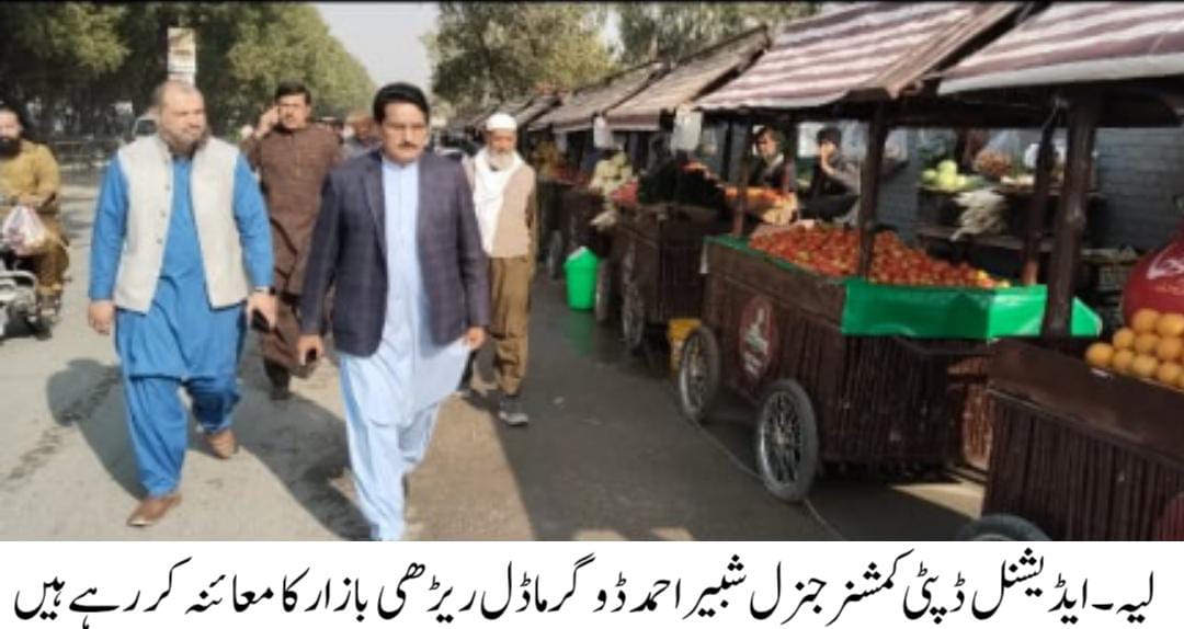 لیہ(نمائندہ لیہ ٹی وی)وزیر اعلیٰ پنجاب مریم نواز شریف کے وژن کے مطابق ماڈل ریڑھی بازار سے عوام کو مقررہ نرخوں پر معیاری اشیاء خوردونوش کی فراہمی جاری ہے۔ ایڈیشنل ڈپٹی کمشنر جنرل شبیر احمد ڈوگر نے اس سلسلہ میں ماڈل ریڑھی بازار لیہ کا دورہ کیا اور صفائی، پھلوں کی قیمتوں اور کوالٹی کا جائزہ لیا۔ ایڈیشنل ڈپٹی کمشنر جنرل نے کہا کہ ماڈل ریڑھی بازار میں صفائی ستھرائی کا خاص خیال رکھا جائے۔ عوام کو مقررہ قیمتوں پر معیاری پھلوں اور سبزیوں کی فراہمی یقینی بنائی جائے۔