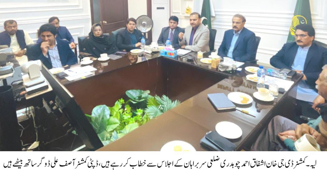 لیہ(نمائندہ لیہ ٹی وی)کمشنر ڈیرہ غازی خان ڈویژن اشفاق احمد چوہدری نے کہا ہے کہ سی ایم انیشیٹوز خالصتاً عوامی فلاح و بہبود کے لئے ہیں۔ تمام متعلقہ محکمے کے پی آئز کی تکمیل کے لئے بھرپور اقدامات کریں۔ انہوں نے یہ بات دورہ لیہ کے موقع پر کمیٹی روم میں افسران کے اجلاس کی صدارت کرتے ہوئے کہی۔ اس موقع پر ڈپٹی کمشنر آصف علی ڈوگر، ایڈیشنل ڈپٹی کمشنرز شاہد ملک، شبیر احمد ڈوگر، اسسٹنٹ کمشنرز حارث حمید خان، ندیم ارشد، محبوب اقبال ہنجرا اور ضلعی محکموں کے سربراہان موجود تھے۔ کمشنر اشفاق احمد چوہدری نے کہا کہ مین ہولز کے ڈھکن ترجیحی بنیادوں پر بروقت تبدیل کئے جائیں۔ ترقیاتی سکیموں میں حائل رکاوٹوں کے سلسلہ میں متعلقہ حکام کو لکھا جائے۔ کمشنر نے ہدایت کی کہ وزیر اعلیٰ پنجاب مریم نواز شریف کے وژن کے مطابق بیوٹیفیکیشن آف لیہ کی دو سکیموں کو ماہ فروری تک مکمل کر لیا جائے۔ انہوں نے کہا کہ ڈسپیوٹ ریزولوشن کمیٹی کو موصول ہونے والی درخواستوں پر فوری فیصلے کئے جائیں تاکہ یتیموں، بیواؤں اور بے بس افراد کی داد رسی ممکن ہو۔ کمشنر ڈی جی خان نے کہا کہ شوگر کین کرشنگ سیزن کے دوران حادثات کی روک تھام اور ٹریفک جام سے بچنے کے لئے پلان پر عملدرآمد یقینی بنایا جائے۔ انہوں نے کہا کہ سکولوں میں مسنگ فسیلیٹیز پروگرام کے تحت نئے کلاس رومز اور ٹوائلٹ بلاکس کی تعمیر اور پینے کے صاف پانی کی فراہمی کو ترجیح دی جائے۔