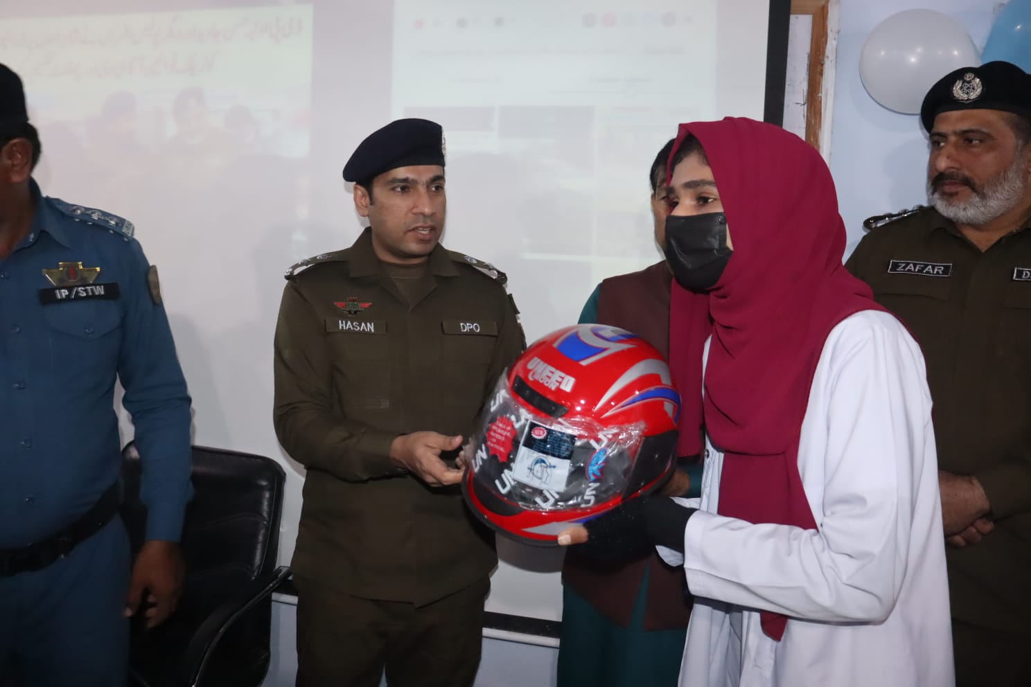 لیہ(نمائندہ لیہ ٹی وی) ٹریفک قوانین آگاہی مہم ،قانون پر عمل داری اور عوامی خدمت ساتھ ساتھ کے سلوگن پر عمل کرتے ہوئے ٹریفک پولیس لیہ کا موٹر سائیکل سوار شہریوں میں مفت ہیلمٹ بانٹنے کا سلسلہ جاری ،ڈی پی او لیہ حسن جاوید بھٹی نے جی سی یونیورسٹی کے طلباء میں مفت ہیلمٹ تقسیم کیے ،اس ضمن میں یونیورسٹی میں آگاہی سیمینار کا انعقاد کیا گیا ،ڈی پی او لیہ حسن جاویدبھٹی ،ڈی ایس پی ٹریفک ظفر اقبال ،یونیورسٹی کے پرنسپل نے طلباء سے خطا ب کیا ،ڈی پی او لیہ حسن جاوید بھٹی نے طلباء سے خطاب کے دوران کہا کہ لیہ پولیس شاہراہوں پر محفوظ سفر کو یقینی بنانے کےلئے کوشاں ہے ،شہری ٹریفک قوانین پر عمل پیرا ہو کر ذمہ دار ہونے کا ثبوت دیں ،اس کے علاوہ ڈی پی او لیہ حسن جاوید بھٹی نے ڈی ایس پی ٹریفک ظفر اقبال و دیگر پولیس افسران کے ہمراہ لیہ مائینر و دیگر مقامات پر بھی موٹر سائیکل شہریوں میں مفت ہیلمٹ تقسیم کیے ۔