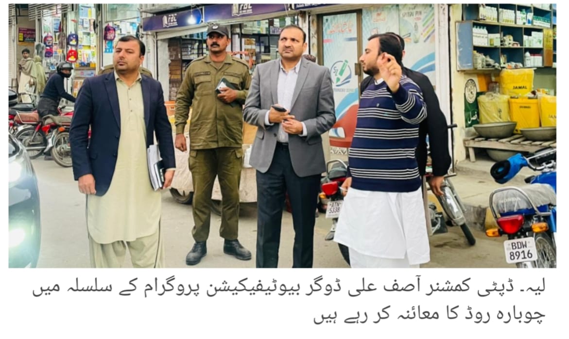 لیہ(نمائندہ لیہ ٹی وی) ڈپٹی کمشنر آصف علی ڈوگر نے چوبارہ روڈ اسلم موڑ کا دورہ کیا۔ ڈپٹی ڈائریکٹر ڈویلپمنٹ اسحاق کھیرانی بھی ان کے ہمراہ۔ ڈپٹی کمشنر نے وزیر اعلیٰ پنجاب کے وژن کے مطابق بیوٹیفیکیشن آف لیہ پرگرام کے تحت مارکیٹ کی یکساں ڈیزائننگ اور پینٹ کے حوالہ سے جائزہ لیا اور ہدایات جاری کیں۔ ڈپٹی کمشنر نے کہا کہ بیوٹیفیکیشن آف لیہ پروگرام کے تحت اسلم موڑ تا ریلوے پھاٹک چوبارہ روڈ کو خوبصورت بازار کی شکل دی جائے گی۔ تمام دکانوں کو یکساں سائز کے سائن بورڈ سے سجایا جائے گا اور مارکیٹ کو یکساں رنگ کا پینٹ کیا جائے گا۔ ڈپٹی کمشنر نے ہدایت کی کہ بیوٹیفیکیشن پلان پر تیزی سے کام کیا جائے اور ماہ فروری تک سکیم مکمل کی جائے۔