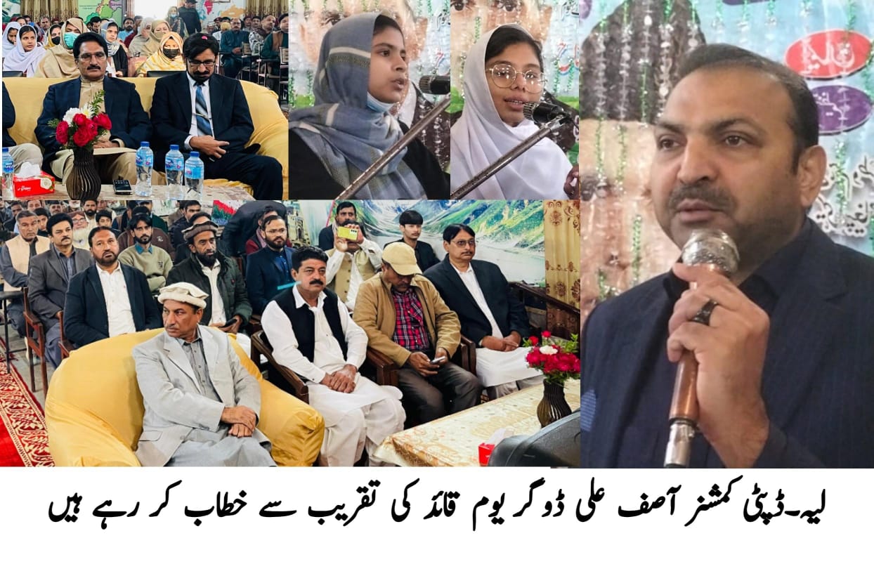 لیہ(نمائندہ لیہ ٹی وی )قائد اعظم ڈے کے حوالے سے گورنمنٹ ایم سی ہائی سکول میں ایک شاندار اور پروقار تقریب منعقد ہوئی تقریب کے مہمانِ خصوصی ڈپٹی کمشنر آصف علی ڈوگر تھے۔ اس موقع پر ایڈیشنل ڈپٹی کمشنر جنرل شبیر احمد ڈوگر ،سی ای او تعلیم ڈاکٹر عبد القیوم،ڈی ای او گل شیر،طلبہ، اساتذہ اور مختلف محکمہ جات کے افسران نے شرکت کی۔تقریب کا آغاز پرچم کشائی،تلاوت،نعت سے کیاگیا۔تقریب سے خطاب کرتے ہوئے ڈپٹی کمشنر آصف علی ڈوگر نے کہا کہ قائد اعظم محمد علی جناح کی زندگی جدوجہد اور اصول آج بھی ہمارے لیے روشن مثال ہیں۔ انہوں نے کہا کہ قائد اعظم کی تعلیمات ہمیں اتحاد، ایمان اور نظم و ضبط کا درس دیتی ہیں اور انہی اصولوں پر عمل پیرا ہو کر ہم پاکستان کو ترقی کی راہ پر گامزن کر سکتے ہیں۔انہوں نے کہا کہ قائد اعظم کے فرمان "کام، کام اور صرف کام” کو مثال بناتے ہوئے اگر آج ہم اپنی ذمہ داریاں بہتر طریقے سے نبھائیں گے تو کل یہی طلبہ اس ملک و قوم کی خدمت زیادہ بہتر انداز میں کر سکیں گے۔ انہوں نے کہا کہ طلبہ اپنی تعلیم، کردار اور ذمہ داری کو سنجیدگی سے لیں، کیونکہ وہی مستقبل کے معمار ہیں۔ڈپٹی کمشنر نے سی ای او ایجوکیشن اور ڈی ڈی کالجز کو ہدایات دیتے ہوئے کہا کہ وہ اپنے اپنے اداروں میں قائد اعظم کے حوالے سے خصوصی نشستیں منعقد کریں جن میں طلبہ تقاریر کریں، کوئز مقابلے ہوں اور نوجوان نسل کو قائد اعظم کی جدوجہد سے روشناس کرایا جائے۔ انہوں نے کہا کہ قائد اعظم کو صرف ان کی سالگرہ کے موقع پر یاد نہ رکھیں بلکہ ان کی فکر اور مشن کو عملی زندگی کا حصہ بنایا جائے۔تقریب کے آخر میں طلبہ و طالبات نے قائد اعظم کی جدوجہد اور تحریکِ پاکستان کے موضوع پر شاندار تقاریر پیش کیں۔ اس کے علاوہ مختلف ٹیبلو اور ملی نغموں کے ذریعے بھی طلبہ نے قائد اعظم سے اپنی عقیدت اور محبت کا اظہار کیا جس پر ڈپٹی کمشنر و شرکاء نے بھرپور داد دی ۔