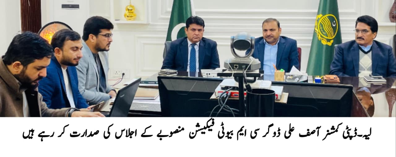 لیہ ( نمائندہ لیہ ٹی وی)ڈپٹی کمشنر آصف علی ڈوگر کی زیر صدارت سی ایم بیوٹیفکیشن پروجیکٹ کے حوالے سے اجلاس منعقد ہوا۔اجلاس میں ایڈیشنل ڈپٹی کمشنر ریونیو محمد شاہد ملک، ایڈیشنل ڈپٹی کمشنر جنرل شبیر احمد ڈوگر و دیگر موجود تھے۔ اجلاس میں سی ایم بیوٹیفکیشن پروجیکٹ کی پیش رفت کا تفصیلی جائزہ لیا گیا اور منصوبے کو مقررہ مدت میں مکمل کرنے کے لیے لائحہ عمل پر غور کیا گیا۔اجلاس سے خطاب کرتے ہوئے ڈپٹی کمشنر آصف علی ڈوگر نے کہا کہ سی ایم بیوٹیفکیشن پروجیکٹ حکومت پنجاب کا اہم منصوبہ ہے جس کا مقصد شہر کی خوبصورتی میں اضافہ اور شہریوں کو بہتر ماحول فراہم کرنا ہے۔ انہوں نے کہا کہ تمام متعلقہ محکمے باہمی تعاون اور مربوط حکمت عملی کے تحت کام کریں اور منصوبے کے تمام مراحل کو مقررہ ٹائم لائن کے مطابق مکمل کیا جائے عوامی مفاد کے منصوبوں کی بروقت تکمیل ضلعی انتظامیہ کی اولین ترجیح ہے اور اس ضمن میں کسی بھی قسم کی غفلت یا تاخیر برداشت نہیں کی جائے گی۔ڈپٹی کمشنر نے کام کے معیار پر کسی قسم کا سمجھوتہ نہ کرنے اور شفافیت کو یقینی بنانے پر بھی زور دیا