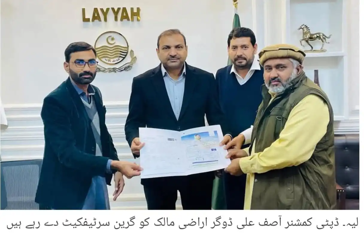 لیہ (نمائندہ لیہ ٹی وی) وزیر اعلیٰ پنجاب مریم نواز شریف کے وژن کے مطابق زرعی اراضی کے تحفظ کے لئے اہم قدم۔ ضلع لیہ کی تاریخ میں پہلی بار گرین پراپرٹی سرٹیفکیٹ کا اجراء شروع کر دیا گیا۔ ڈپٹی کمشنر آصف علی ڈوگر نے پلس پراجیکٹ سے ونڈا شدہ رقبہ کا پہلا گرین سرٹیفکیٹ اراضی مالک کو دیا۔ تفصیلات کے مطابق ضلع لیہ کی تاریخ میں ایک اہم اور تاریخی سنگِ میل اس وقت عبور کیا گیا جب پہلا گرین پراپرٹی سرٹیفکیٹ باقاعدہ طور پر جاری کیا گیا۔ اس سلسلہ میں ڈپٹی کمشنر آصف علی ڈوگر نے اپنے دفتر میں اراضی مالک کو گرین سرٹیفکیٹ دیا۔ اس موقع پر جی آئی ایس منیجر پلس وقاص شفیع اور لینڈ ریکارڈ آفیسر محمد شاہد بھی موجود تھے۔ اس موقع پر چک نمبر 431 ٹی ڈی اے کے رہائشی محمد ارشد قمر، جنہوں نے گرین پراپرٹی سرٹیفکیٹ کے حصول کے لیے درخواست دی تھی، کو ضلع لیہ کی تاریخ کا پہلا گرین پراپرٹی سرٹیفکیٹ جاری کیا گیا۔ سرٹیفکیٹ کے حصول پر محمد ارشد قمر (مالکِ اراضی) نے ڈپٹی کمشنر لیہ اور بالخصوص وزیرِ اعلیٰ پنجاب محترمہ مریم نواز کا تہہ دل سے شکریہ ادا کیا۔ ڈپٹی کمشنر آصف علی ڈوگر نے اس موقع پر گفتگو کرتے ہوئے کہا کہ سرٹیفکیٹ کے اجرا کے بعد اراضی مالک کا زمین پر قبضہ مکمل طور پر تصدیق شدہ ہو چکا ہے اور اب ان کی پراپرٹی ہر قسم کے قانونی و انتظامی معاملات کے حوالے سے محفوظ ہو گئی ہے۔