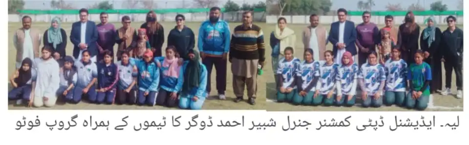 لیہ( نمائندہ لیہ ٹی وی) یوم یکجہتی کشمیر کے موقع پر سپورٹس ڈیپارٹمنٹ لیہ کے زیر اہتمام فٹبال، ہاکی اور بیڈ منٹن کے میچ کھیلے گئے۔ ڈسٹرکٹ سپورٹس کمپلیکس میں گرلز فٹبال اور ہاکی کے میچ منعقد ہوئے۔ میچوں کے مہمان خصوصی ایڈیشنل ڈپٹی کمشنر جنرل شبیر احمد ڈوگر تھے۔ اس موقع پر ڈسٹرکٹ سپورٹس آفیسر امتیاز احمد بھٹی و دیگر بھی موجود تھے۔ ایڈیشنل ڈپٹی کمشنر جنرل سے ٹیموں کا تعارف کروایا گیا۔ اے ڈی سی جی نے اس موقع پر گفتگو کرتے ہوئے کہا کہ کشمیریوں کے حق خود ارادیت کے لئے ہر پاکستانی ان کے ساتھ کھڑا ہے۔ انہوں نے کہا کہ کشمیر میں ڈھائے جانے والے مظالم کسی سے ڈھکے چھپے نہیں اور ان کو اجاگر کرنے کے لئے ہر پلیٹ فارم استعمال کیا جائے گا تاکہ اقوام عالم کی قردادوں پر عملدرآمد ہو سکے۔ ڈسٹرکٹ سپورٹس آفیسر امتیاز احمد بھٹی نے بتایا کہ یوم یکجہتی کشمیر کے سلسلہ میں چوک اعظم اور تحصیل کروڑ لعل عیسن میں بھی فٹبال اور بیڈ منٹن کے میچ کروائے جا رہے ہیں۔