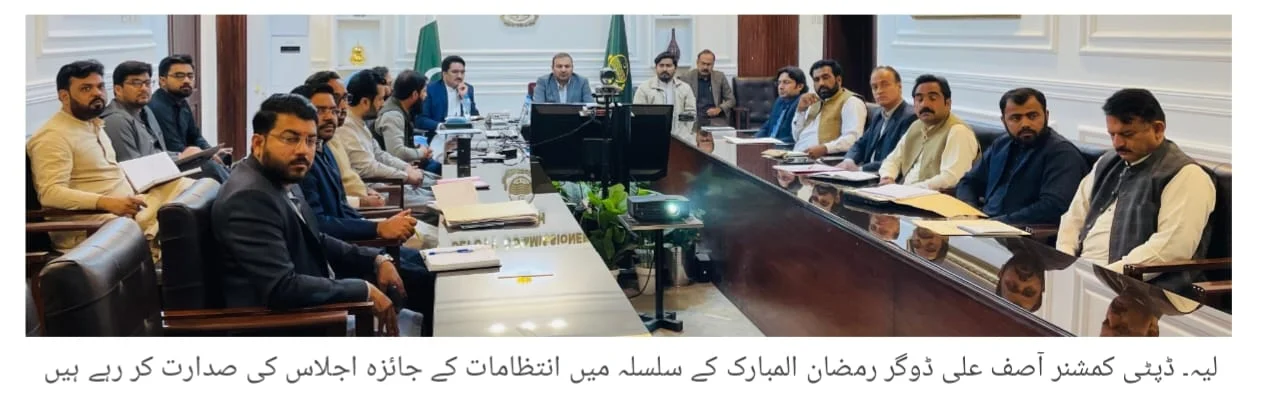 لیہ(نمائندہ لیہ ٹی وی) ڈپٹی کمشنر آصف علی ڈوگر نے کہا ہے کہ رمضان المبارک میں عوام کو مثالی سہولیات فراہم کریں گے۔ انہوں نے یہ بات کمیٹی روم میں رمضان انتظامات کے جائزہ اجلاس کی صدارت کرتے ہوئے کہی۔ اجلاس میں ایڈیشنل ڈپٹی کمشنرز شاہد ملک، شبیر احمد ڈوگر، اسسٹنٹ کمشنر لیہ زوہیب کریم، ایس ڈی ای او پیرا ام حبیبہ اور متعلقہ افسران موجود تھے جبکہ اسسٹنٹ کمشنر کروڑ لعل عیسن اصغر علی اور اسسٹنٹ کمشنر چوبارہ ندیم ارشد نے ویڈیو لنک کے ذریعے شرکت کی۔ ڈپٹی کمشنر نے ہدایت کی کہ وزیر اعلیٰ پنجاب رمضان نگہبان کارڈ گھر گھر پہنچانے، ایکٹیویٹ کرنے اور رقوم کی ادائیگی کو رمضان کے پہلے عشرے تک یقینی بنایا جائے۔ ڈپٹی کمشنر نے کہا کہ مساجد اور امام بارگاہوں کی صفائی ستھرائی اور لائٹنگ کا مناسب بندوبست کیا جائے جبکہ رمضان بازار، سہولت بازار اور سہولت آن دا گو بازار رمضان المبارک سے قبل آپریشنل کر دئے جائیں۔ ڈپٹی کمشنر نے ہدایت کی کہ رمضان دستر خوان مریم کے مہمان کے لئے موزوں مقامات پر افطار کے بہترین انتظامات کئے جائیں۔ ڈپٹی کمشنر نے کہا کہ اشیاء خوردونوش کی نیلامی کے عمل سے مارکیٹ تک قیمتوں کی پڑتال کی جائے۔ مصنوعی مہنگائی اور ذخیرہ اندوزوں کے خلاف فوری کارروائی کی جائے۔ ڈپٹی کمشنر نے کہا کہ رمضان المبارک رحمتوں اور برکتوں کا مہینہ ہے۔ تمام متعلقہ ادارے اور افسران عوام کی حقیقی معنوں میں خدمت کر کے نیکیاں سمیٹیں اور اللّہ تعالیٰ کے ہاں سرخرو ہوں۔