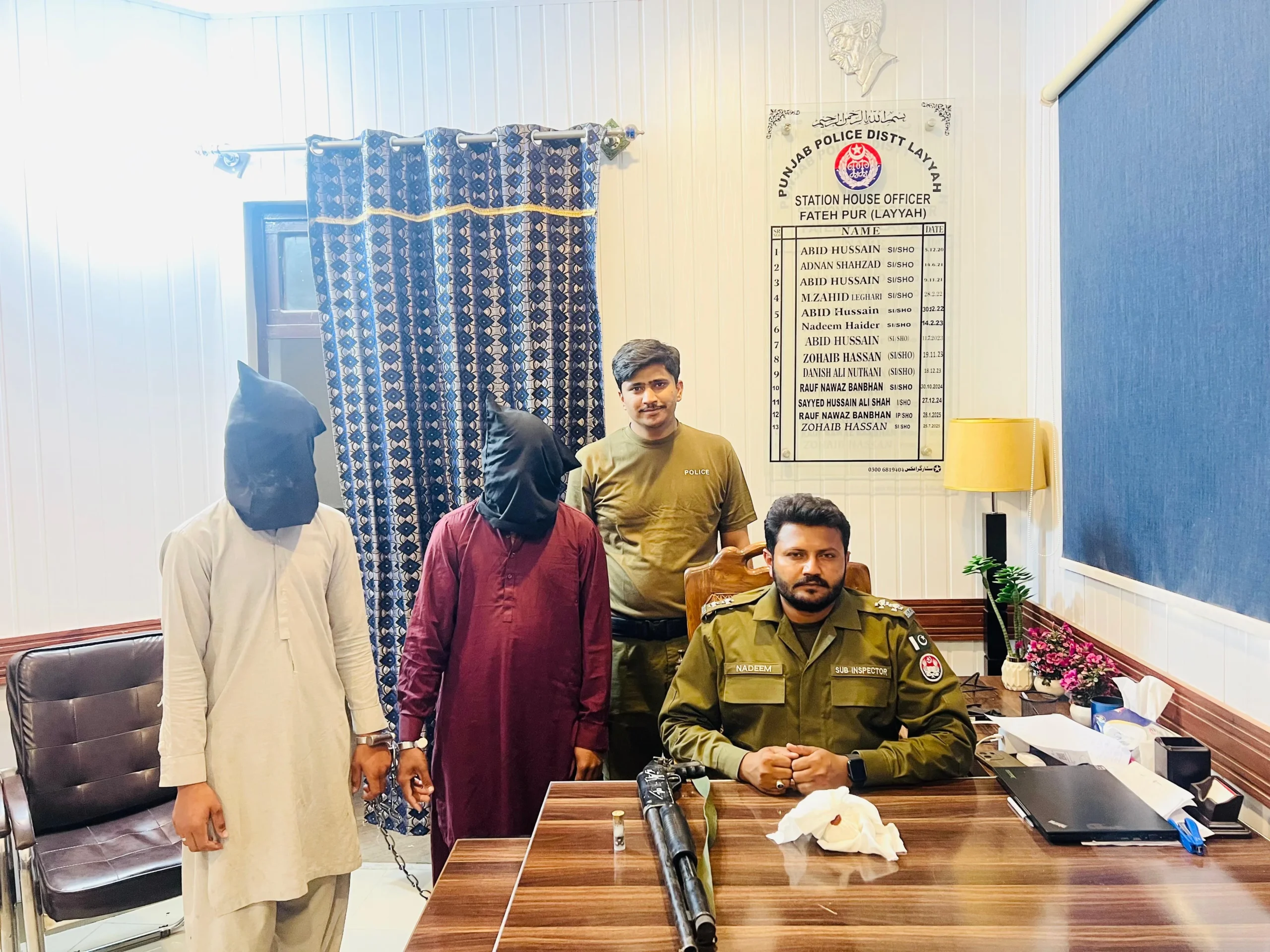لیہ(نمائندہ لیہ ٹی وی) تھانہ فتح پور پولیس کی منشیات فروشوں اور اسلحہ ناجائز رکھنے والوں کے خلاف کاروائی ، منشیات فروش شہباز اور اسلحہ ناجائز کا ملزم شیراز گرفتار ،آئس اور اسلحہ ناجائز برآمد ،مقدمات درج ، ڈی پی او لیہ حسن جاوید بھٹی کی ہدایت پر ضلع کو کرائم فری بنانے کےلئے تھانہ فتح پور پولیس کے سب انسپکٹر محمد ندیم نے دو الگ الگ کاروائی کرتے ہوئے منشیات فروش ملزم شہباز کو گرفتار کرکے 350گرام آئس برآمد کر لی جبکہ ایک اور کاروائی کرتے ہوئے ملزم شیراز کو گرفتار کرکے ریپٹر رائفل معہ رائوند برآمد کرکے الگ الگ مقدمات درج کر لیے ۔