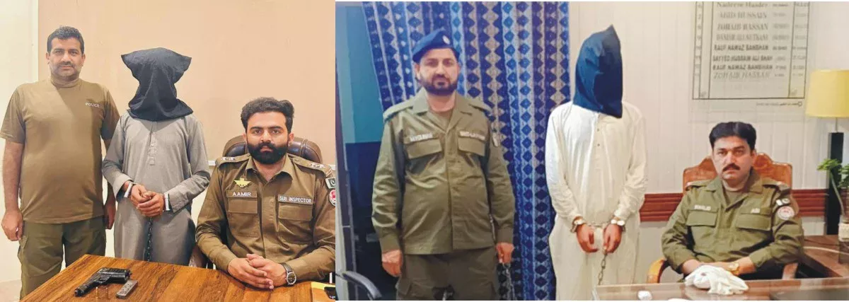 لیہ(نمائندہ لیہ ٹی وی) لیہ پولیس کی جرائم پیشہ عناصر کے خلاف کاروائی ،تھانہ کوٹ سلطان اور تھانہ فتح پور پولیس نے الگ الگ کاروائی کرتے ہوئے منشیات اور اسلحہ ناجائز کے ملزمان گرفتار کر لیا ،تھانہ کوٹ سلطان پولیس کے سب انسپکٹر عامر اسلم نے اسلحہ ناجائز کے ملزم زبیر کو گرفتار کرکے پسٹل معہ راؤند برآمد کرکے مقدمہ درج کر لیا جبکہ تھانہ فتح پور پولیس کےا ے ایس آئی خالد خان نے منشیات فروش طلعت کو گرفتار کرکے آئس 205 گرام برآمد کر لی ،ملزم کے خلاف امتناع منشیا ت ایکٹ کے تحٹ مقدمہ درج کر لیا گیا ۔